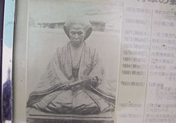 加治屋町の辺りは、西郷隆盛や大久保利通の生誕の地など歴史ゾーンを歩く思いがする。あちこちに先人たちの銅像や記念碑も建っており、郷土を誇らしく思うひと時を提供してくれる。あるときふと気づいた。武之橋に近い一角に上に何もないコンクリートの台座があった。どうしてだろう、と近づくと、大正8年に建てられ、「乃木将軍夫人湯地氏誕生之地」(写真1)と刻んである。我々の世代でさえ忘れ去られてしまった乃木静子の銅像があったのだ。だが、何らかの理由で銅像部分が撤去されたのだろう。乃木静子は、明治天皇崩御の際,殉死を決意した夫の陸軍大将の乃木希典に従い、自刃した女性である。彼女は、薩摩藩の御典医湯地定之の四女として生まれ、一家の上京とともに東京に移り、麹町の女学校を経て長州出身の乃木中佐(当時)と結婚。女学校時代から「湯地の娘が男なりせば」と賞賛されるほどの才女だった。日露戦争で愛息二人を失うが、取り乱さず、毅然としていたなどのエピソードや勤勉、質素な暮らしぶりから、戦前の女子教育の目指す理想像とされていた。傍らの鹿児島市のたて看板に彼女の正座姿の写真(写真2)がある。コンクリートの台座の上に、載っていた銅像を写したものと思われる。その表情は、硬く厳しい。現代社会で一般にみる華やいだふくよかな美しい女性のイメージとは、かけ離れたものだ。しかし、近代国家をつくる過程で日本人が一時的にも理想像と感じた歴史的な女性もまた、甲突川沿いで生まれたのだと想うとある種の感慨が強烈に沸いてくる。