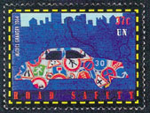 【世界保健デー2004年のテーマは「交通安全」。国連とフランスの共同発行の切手】