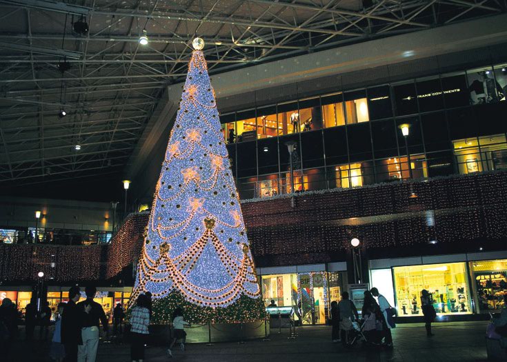 人々が足をとめ、たたずむクリスマス・ツリー。
