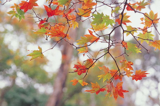 紅葉のころ、不動池から六観音御池へのトレッキングは、秋の風が爽やかで気持ち良い。韓国岳のススキを背景にして、不動池湖畔を登る。道中、イロハモミジ、コハウチワカエデ(写真)、シロモジ、ミズナラ、ウリハダカエデ、そしてヤマウルシと色とりどりの紅葉(黄葉)があり素晴らしい。紺碧の六観音御池に映える紅葉を眺めながら、一休みする。至福の時間である。余裕があれば、白鳥山に登る。ドウダンツツジが紅葉し、リンドウが咲いている。