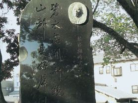山茶花社創業貴島黎明氏の碑がある。昔のおぎおんさーを忍ばせて懐かしい。
