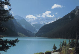 ロッキーの宝石と称されるレイク・ルイーズの名前の由来は、湖畔に映るビクトリア氷河(つまりビクトリア女王)が残した湖に女王の娘ルイーズの名前がつけられたとガイドが説明してくれる。後程出現するアグネスも娘の一人とか。レイク・ルイーズの右手を迂回して歩くうちに、湖畔に映る唐松林がさながら鏡面像のように映るミラー湖から登りになる。途中唐松の美しい黄葉と、所どころ見え隠れするレイク・ルイーズのエメラルドグリーンに輝く湖面を眺めながら歩くうちに、やがてリトル・ビーハイブ(2,210m)に着く。山頂からはロッキーの山々が壮大な自然のパノラマとなって眼前に迫る。下山途中レイク・アグネス湖畔で、湖面に映る美しい景色を見ながらピクニックランチを食べる。同じルートで下山してハイキングを終了した後、美しい氷河湖モレーン・レイクへ移動する。湖を囲むテンプル山、テン・ピークスや沢山の山々から流れ込む水を常時満々と蓄えているモレーン・レイクの眺望を欲しいままにする。