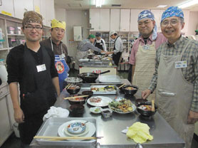これでおしまいだったはずだが、昨年秋以降、JA鹿児島県中央会主催の「男子弁当教室」=筆者は右端。写真はJA提供=に2回も参加してしまった。きっかけは自分自身だった。JA県中央会主導の「よい食・環境 鹿児島県民フォーラム」が昨年6月にスタートした。その設立発起人会に出席して、地産地消、食糧自給率アップ、安心安全な食糧作りなどの旗印に賛同しつつも、若い人たちや県外の人たちにももっとアピールする必要性を感じた。鹿児島の素晴らしい農産物のマーケットを広げないと生産者の活力につながらないのではないか、とも考えた。自分のできる範囲で何かできないかと若い人の助けを借りて幾つかの個人的な提案をJAなどに訴えた。鹿児島食材の素晴らしさを宣伝してもらうためには、県外から赴任しておられる男性や県外に出て行く男性が実際に食材を使って料理をするのが大切ではないか、といった内容も含まれていた。鹿児島の伝統的価値観といってもよい、「男の子は台所に近づいてはいけません」といった母親の躾は、グローバルな時代に合わなくなっている、とも感じた。そして提案の一つに男子弁当教室もあった。私の話を聞いたJA中央会の担当者の川路尚子さん(食農生活課主査)が「近く男子弁当教室をやりますから是非参加してください」と。またもや自縄自縛である。しかし、今回は素直に参加したくなった。県外から支店長などで着任しておられる方々を中心にお誘いした。JAの方々も県外の方々も参加者たちは大変盛り上がった。中央会の女性たちもアシスタントとして参加し、我々を手助けした。私は、その後、習った通りに弁当を3回も手作りし、会社に持参した。