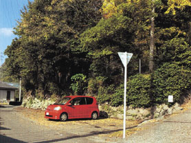 昼食を済ませて再び町内を廻る事にした。まず何より懐かしい小学校に行く。(写真3)校門の石崖下に奇麗な水が滾々と湧いて、10坪ぐらいの池に溢れんばかりの鯉の群れが元気良く泳いでいるものだった。残念ながら今では無粋な駐車場になって黄色の落ち葉が一面に散りし切って赤い軽乗用車が一台止まって居た。寂しかった。(写真4)