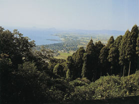 丁度その頃、歴史ある古墳群とテクノパークで有名な上之段高原の300メートル位の高台を支えている屏風みたいな崖があるが、それに発破を掛けて上之段への道路の開鑿が始まっていた。「発破えー」と声がするとパッと煙が揚がり数秒後に「ドーン」とダイナマイトの音が静かな街に響き、崖が崩されていくものだった。この道が出来たら登ってみたいなあと思っていたが今回やっと登る機会を得た。意外に広くなんとか車が離合出来る、曲がりなりにも舗装がしてあった。子供の頃の望みが叶えられて楽しかった。上之段に近い道路の分岐点で折り返す。(写真5)見下ろす緑の田園、敷根の町は積み木細工の様で美しい、前方に櫻島が聳えて絶景だった。子供の頃皆で遊んだ思い出が望見出来た。昔崖だったのに杉、檜の植林がしてあり80年も経つと随分伸びて視野を遮る場所もあった。過ぎた年月の遠さを感ずる。下山して達成感で気持ちが良かった。今度はお寺さんに行く、昔あった大きく奇麗な銀杏の木は無くなって一基の鐘楼に変わっていた。良く遊んだ寺のF君の事を思う。
