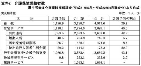 また,介護予防サービスの縮小については,介護予防サービスを受給している利用者が実人数で全体の利用者のうち29.6%を占めており,サービスを利用されている方々へ大きな影響があるばかりでなく,介護保険事業所の死活問題になります(資料2を参照)。