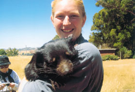 ナイトツアーでウォンバットの巣を見に行った。帰途ポッサムやワラビー,パディメロン(小型のカンガルーの一種)を見かけた。