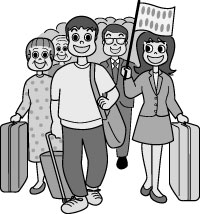 (パソコンで 旅のじょうほを さぐいみと)
