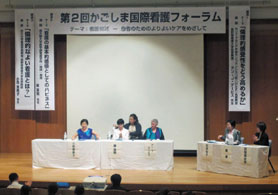 「無医島に駐在する看護師の看護継続教育支援システムの開発」について,学内研究者グループとデービス博士とともに対象者の選定,研究方法論について討議を行い,助言をいただいた。また,ルーラルナーシングの専門家であるカナダのサスカチュワン大学看護学部教授のNorma J. Stewart博士ともメールを活用し現状について意見交換を行った。 デービス博士の研究経験に基づく知見の奥深さと広がりのある助言は,今回の研究課題においても活かされ,これにより,他文化の視座から日本の伝統的慣習と倫理的価値について改めて見直し,視野を広げる結果となった。デービス博士滞在中には実際の調査は行うことができなかったが,住民がどのようなニーズを持っているかに焦点を当てた調査方法や,住民の倫理的側面への配慮について助言をいただき,今後の調査・研究につながるものとなった。 また,他の看護教員,大学院生,国費留学研究生においては,それぞれの研究課題についてデービス博士と意見交換を行った。各教員,大学院生,研究生は,この過程でそれぞれの研究に対し,デービス博士の豊富な研究蓄積を踏まえた具体的な助言・指導を受け,研究デザインの選定や結果の解釈を行う上で大きな知見を得,研究を遂行する上で役立つものとなった。 2.国際フォーラムでの講演 平成23年10月22日に,鹿児島県内外の看護職者・医療者を対象に,鹿児島大学医学部鶴陵会館にて第2回かごしま国際看護フォーラム「看護倫理−患者のためのよりよいケアをめざして−」を鹿児島大学病院との共催で開催した。日本においては,倫理への関心は最近急速に高まっているが,看護師の多くは,倫理とは何か?何故重要か?倫理的に考えるとはどういうことか?などの理解がまだ十分とはいえず,看護専門職としての倫理の理解が曖昧であるのが現状である。その点を踏まえ,デービス博士には「倫理的感受性をどう高めるか」をテーマに講演していただいた(写真1,2)。講演の後,日常的な看護業務の中で避けて通ることのできない看護や医療の倫理的課題をめぐって,会場から様々な質問や意見が出され,活発な討論が行われた(写真3)。 フォーラムには,医療施設で実務に従事している看護職,看護師養成機関の教員,看護学生など,県内はもとより,遠くは長野,東京などから約230人の参加があった。また,倫理問題への関心の高さからか,南日本新聞社の取材もあり報道された(図1)。詳細は,本学ホームページにも掲載されている。 http://www.kagoshima-u.ac.jp/topics/2011/11/post-154.html 3.学部および大学院教育の支援 「看護倫理」,「看護教育学」,「看護学原論」,「小児看護学概論」の科目において,授業の一部をデービス博士に担当してもらった。また,大学院生と教員を対象とした国際セミナーを2回開催し,講演をお願いした。授業は学内外の教員・研究者・大学院生にも公開した。教員は,知識の学びに加え,教育の手法や戦略,学生との対話のあり方等について多くの示唆を得る機会となった。また学生は,教授された内容から多くの知見を得ることはもとより,英語で授業を受けることにより,海外に目と耳を開く機会にもなった。さらに,海外の状況を知ることにより,日本の看護実践や教育についても考察が深まり,大変よい経験になったと考える。国際セミナーの詳細は,本学ホームページに掲載されている。 1ヵ月という短期間であったが,デービス博士にはフルに講義・講演・指導と大きく貢献していただいた。たくさんの教員,学生がデービス博士の部屋を訪れ,研究指導・助言をいただいた。中には,実習場で実際に経験した倫理的ジレンマを打ち明ける学生もおり,涙ながらに自分の経験を話し,デービス博士に助言をもらうことで,1年間思い悩んでいた問題が解決したと喜んでいた。地域看護職を対象としたフォーラムにおいては,活発な意見交換がなされ,鹿児島の地で国際フォーラムを開催したことに対する感謝のメールも学外から何通か受け取った。 デービス博士の実質的な活動は,鹿児島の看護に多大な貢献をもたらしたと考える。平成24年の3月には学内研究グループと若手教員数人がカリフォリニア大学サンフランシスコ校を訪問し,研究打ち合わせを行うとともに,学生交流についても検討する予定である。是非今後もデービス博士および大学間の交流を続けていきたいと考えている。