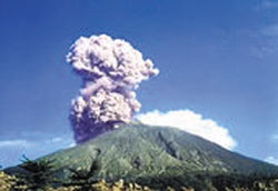 大音響が鹿児島の街を揺るがす。2千メートル,3千メートル,時にはそれ以上の高さまで上りつめた噴煙は,間もなく形を崩し乱れ広がり,日食さながらに暗く天を蔭らす。やがて,ザ,ザ,ザーッとシャワーのように音を立てて灰が降り注ぐ。車はライトをつけ,ワイパーでフロントガラスに積もった灰を払いのけながら,のろのろと走る。人はハンカチで口を押さえ,傘を差し,鞄を頭にのせ,小走りに先を急ぐ。うんざりした表情の中に,濃い疲労感が滲む。