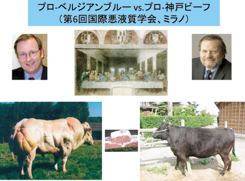 ミラノの学会では,ベルジアンブルーと神戸ビーフの対決があった(図)。