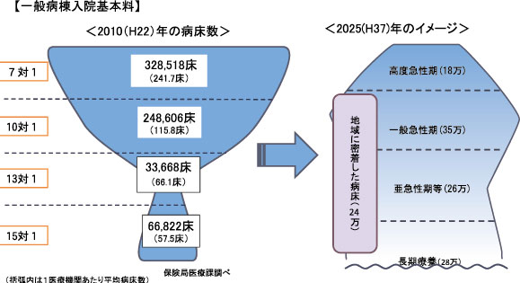 一般病床については,次の図で,入院基本料ごとに,より鮮明に説明されている(図2)。