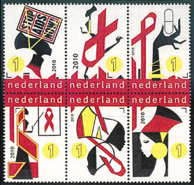 オランダ(2010年)エイズ撲滅(6種連刷)