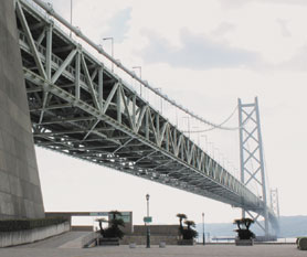舞子の浜には大会社の別荘・保養所があり,中国の孫文も住んでいたそうだし,それに舞子カントリークラブも有名だ。明石海峡大橋は,阪神・淡路大震災の時に地盤がずれたため,主橋脚が数センチずれ,橋の全長が1メートルほど伸びたそうだ。橋の工事により折角の白砂青松が大分埋め立てられて道路が拡張され,松林もすっかり蚕食されて昔の面影が無くなっている。