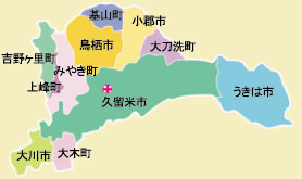 久留米広域小児救急センター(鹿児島市夜間急病センターに相当)は聖マリア病院内に6年前に設置されました。それまで聖マリア病院小児科は24時間診療で,小児科医が疲弊し大変であったためこのようなセンターが設置されたとのことです。福岡県内は久留米市,小郡市,大刀洗町,うきは市,大川市,大木町,県境を越えて,佐賀県は鳥栖市,吉野ヶ里町,三養基郡みやき町,上峰町,基山町などで久留米広域市町村圏事務組合を形成し,これらの広い地域の小児救急患者に対応しています(図)。これは派遣する小児科医を減らし久留米大学小児科の負担を減らすとともに,各市町村が同じような施設を保有する無駄を無くすという効果があるそうです。県,国も支援しています。
