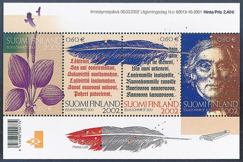 オオバコ(薬草研究),民族誌「カレワラ」の冒頭と最後の部分(編纂)と羽根ペン,肖像