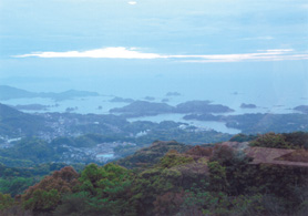 往路は路線バスで2時間も掛かり閉口したので,復路はタクシーで佐世保に向かい,真っ赤な平戸大橋(写真7)を渡って街を離れ,1時間ほどで佐世保の弓張岳(353m)に建つ弓張の丘ホテル(写真8)に着いた。佐世保は人口25万5千の中都市であるが,日露戦争の時,東郷司令長官率いる連合艦隊が,ここから出撃してバルチック艦隊を殱滅したので有名だ。横須賀,呉と並んで軍都であるが,昭和20年6月に140機のB29の爆撃を受け焦土と化した。現在は海上自衛隊と米海軍の基地となっている。