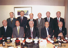 このように太原先生は威風堂々とした外見に比して,理事者の発言をよく聞かれ細かくご配慮のうえ温容あふれる処置を常にされていたのをいまさらながら痛感している。当時の理事会では太原会長のもと会員の為どうすることがベストなのかと活発な議論が常にされており,会長が理事者の風貌を見てこれは「猛獣軍団」だといつも言われていたのが印象に残っている。退任されてからもかつての理事者との再会を喜ばれ折にふれ懇談会が開かれてきていた。太原先生に関する想い出はありすぎて筆に尽くしがたいが,先生はスマートで頭脳明晰,ユーモアあふれる方であり,また美食家でもあったし,さらに旅行が大好きで日本中を奥様とドライブされ,パリでもレンタカーに乗れたと自慢されていた。ご冥福を祈りながら先生の米寿の際のお祝いの記念写真をお示ししてお別れとしたい。