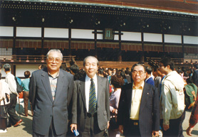 先生はまた,会長として全国の各種会合,会議に出席されましたが,中でも全国学校保健・学校医大会には先生をはじめ学校保健担当役員,会員の先生方,担当事務職員共々毎年参加しました。会議のあと夜には先生を囲んで小宴会と盛り上がり,大会閉会後はミニ観光を楽しむなど,また,多忙な業務を一休み,息を抜いて楽しみ英気を養うという退任役員共々の執行部一休会旅行もよき思い出になっています。このように,先生は人の輪を大切にしておられました。日本酒を好まれ,お酒の席での先生のテーブルには焼酎,ビールに加えて必ず特注の?日本酒(冷酒)が用意されていました。