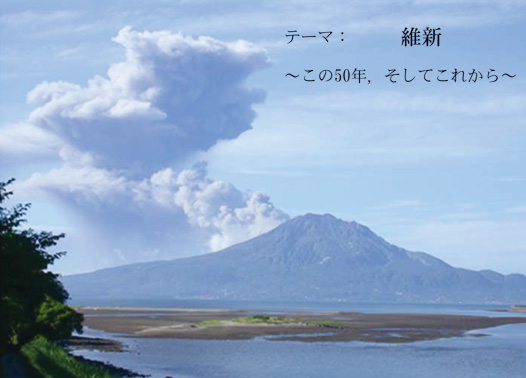 学会テーマを「維新」,サブテーマを「この50年,そしてこれから」としました。日本の夜明けとなった明治維新の立役者である西郷隆盛は,近世から近代への大きな転換期に重要な役割を果たしました。来年は,明治維新の始まりとされる1866年の薩長連合の締結より150年という節目を迎えます。それぞれに大きな志を抱いた藩士たちが,ここ鹿児島より全国へ,海外へ飛び出していきました。日本の南端で育った若者たちはどのような未来を思い描いていたのでしょうか。150年前に思いを馳せながら,私たちもさらなる前進そして新たな挑戦のための学会にしたいと思い,そして「敬天愛人」の精神でこのテーマを選定しました。