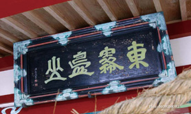 ○社殿の正面には,「東霧嶋坐」と大書した扁額が収められており,額面の左には「源光久書」と奉納者が記されている。「源光久」は,島津家第18代当主島津家久の嫡男光久のことであり,島津氏が他の六所権現の諸社に比して,霧島東神社を手厚くもてなしたのは,この社が霧島信仰の根源であると見なしたからであると考えられています。