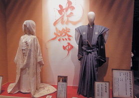 前日の14日(土)朝,新幹線で新山口まで行き,萩の「花燃ゆ大河ドラマ館」までの直行バス「スーパーはぎ号」に乗ることができた。7月に松下村塾が世界遺産に認定されたせいか今年いっぱいバス代は半額で,昼前に着いてみると観光客で溢れていた。ドラマ館(写真1)は萩藩校明倫館の跡地にできた旧明倫小学校の講堂を利用して臨時に設置され,配役達の衣装などの展示と(写真2),松下村塾や松陰の実家のレプリカが造られ,ドラマ作製過程の映画も上映されていた。小学校の校舎のほうでは本格的な歴史資料館を造る工事が始まっていて,立ち入り禁止になっていた。
