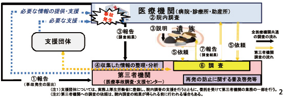 小田原良治構成員 医療事故に係る調査の仕組みのポンチ絵(図4)@報告とあるが,下に括弧書きで「事故発生の届出」とある。この届出というのは,法的強制力のある届出という意味か?報告ではないのか?実質的に報告と同じと捉えていいか? 大坪寛子医療安全推進室長 報告である。 大磯義一郎構成員 医療法は公法だと思うが,医療事故調査支援センターは民間施設という立てつけになっている,病院等と医療事故調査支援センターという私人間の義務を定めているものではないという理解でいいか? 土生栄二総務課長 直接に何か罰則があるといった構成にはなっていない。医療法上の義務,管理者の義務として定められている。 有賀 徹構成員 今の医療事故に係る調査の仕組みのポンチ絵(図4)のDの依頼は,@ABCがあって,その後Dがあるので,@の報告を抜きにして,D依頼だけが突然生ずることはないとの説明であったが,どの条文にあるのか? 大坪寛子医療安全推進室長 医療法第6条の17に「医療事故調査・支援センターは,医療事故が発生した病院等の管理者又は遺族から,当該医療事故について調査の依頼があったときは,必要な調査を行うことができる。」との規定がある。 西澤寛俊構成員 厚生労働科学研究補助金による研究事業の10月23日中間的議論の整理について説明。 小田原良治構成員 日本医療法人協会医療事故調ガイドライン(現場からの医療事故調ガイドライン検討委員会最終報告書)を説明。 現場に受け入れられない制度は到底成功するとは思えないので,現場目線でとりまとめた。「臨床現場の医療従事者が判断に迷わないよう,また,臨床現場に過剰な負担が生じ,このために,医師等の患者さん方に割くべき時間がとられ,患者さんが危険にさらされることのないよう,改正医療法の条文を原則論から解説するとともに,本制度の実施・運用のあり方について提言を行う。 「当ガイドラインの原則」の原則@として「遺族への対応が第一であること」としているが,これは医療者の大原則であり,患者さん死亡時に迅速にすべきことは遺族への対応,遺族に対する説明であり,センター報告ではない。遺族への対応,説明は,医療安全の確保を目的とする本制度の外にあるものであるが,医療の一環として大事な事であり,遺族とのコミュニケーション不足が予想外の紛争を招き,遺族にとっても,医療従事者にとっても不幸な事態となることから,原則@遺族への対応の重要性を強調した。原則Aは「法律にのっとった内容であること」,原則Bは「本制度は医療安全の確保を目的とし,紛争解決・責任追及を目的としない」,原則C「WHOドラフトガイドラインに準拠すべきこと(非懲罰性・秘匿性を守るべきこと),原則D「院内調査が中心で,かつ,地域ごと・病院ごとの特性に合わせて行うべきであること」,原則E「本制度により医療崩壊を加速してはならないこと」。 再発防止策は,個々のケースから短絡的に行うべきではなく,死亡に至らないケースや,ヒヤリ・ハット事例も含めて,従来通り,院内医療安全委員会で検討すべき。既存の医療事故情報収集等事業(日本医療機能評価機構)を活用すべき。 山本和彦座長 あと,2−3分でまとめを 小田原良治構成員 「予期しなかった死亡」の定義について,「予期しなかった死亡」とは,「亡くなるとは思わなかった」という状態であり,「死亡という結果」を予期しなかったものである。定義すれば,「通常想定しないような死亡」である。「予期しなかった死亡」は「予期」という要素だけに着目して小さく狭く制度を開始すべきであり,医療法も,病院管理者の主観に「予期しなかった死亡」の判断を委ねている。 佐藤一樹参考人(田邉 昇構成員代理) WHOドラフトガイドラインが明言するように,いわゆるアカウンタビリティのための事故調査制度と,学習によって事故再発を防止し,もって安全な医療を国民に提供する事故調査制度は両立しない。 「国民の理解が得られない」といった発言をする識者や,医療団体の方もあるが,国民の事故調査制度理解度調査は行われておらず,今回の改正医療法に基づく医療事故調査制度が,アカウンタビリティのための制度でない以上,係る議論は非建設的である。 加藤良夫構成員 「日本医療法人協会医療事故調ガイドライン」について,過誤類型が基本的に削除されていると書かれているが,過誤の類型が排除されることになると,都立広尾病院事件が落ちてしまう。社会常識的に見て,到底了解できる話ではない。当然,過誤類型も含まれている。 管理の問題でも,日本医療法人協会のガイドラインは西澤構成員の報告と内容的に違っている。管理というものを完全に除外することは現実の問題としても難しい。 山本和彦座長 小田原構成員,当然反論はあると思うが,多くの人の意見を聞きたいので・・・ 小田原良治構成員 私を指名しての意見なので・・・ 山本和彦座長 簡略に 小田原良治構成員 都立広尾病院事件の話が出たが,今回,医師法第21条は議論しないという話であった。都立広尾病院事件は明らかに外表