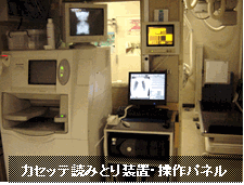 Radiography)撮影などコンピュータでさまざまな画像処理が可能です。CRは、コンピュータを使ってX線情報からデジタル画像を作成するシステムです。コンピュータ処理の最大の特長は、画像読取装置によって得た画像情報を加工処理できることで、撮影されたX線画像は、それぞれの部位に最も適した濃度とコントラストになるよう処理されたり、細かい線や点の強調などもでき、診断価値の高い写真を得ることができます。この情報は、デジタル信号に変換されているため、CRTモニター上に表示し観察することもでき、ディスクに記録保管したり、回線で伝送することも可能です。これらがデジタル画像の特長です。当院放射線室のX線撮影はすべてこのCRシステムを使用しています。 |