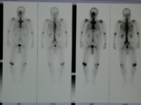 X(エックス)線撮影ではX線が身体を透過してフィルムに写し出されます。 RI検査ではγ(ガンマ)線という放射線を放出する放射性同位元素を含んでいる薬を投与します。 特定の臓器や病変を見つけるために目的とする検査ごとに検査薬が用意されています。 それが臓器や病変部に取り込まれた薬から放出される微量のガンマ線を体外の専用カメラ(ガンマカメラ)で検出し、これらのデータをコンピュータで処理してフィルムに写し出されます。 |