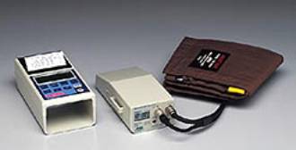 血圧測定のためのカフを腕に巻き肩から小型の記録装置を携帯します。