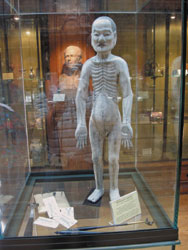 その中には、各種外科手術器具、補聴器、顕微鏡、麻酔器具、気管カニューレ、心電計、内視鏡、化学実験道具などがあり、針治療の経穴を印した17世紀の人体模型(写真)や、ナポレオン一世を解剖したという解剖セットなどもあり、大変興味深いものであった。