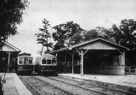 *田圃の中を走る電車の停留所は各駅とも形式が異なり童画風でロマンチックな設計はヨーロッパの田舎の駅に似ていた。週刊新潮の表紙に25年来連載して子供に夢を持たせた谷内六郎の絵を思わせた。(写真3〜5)