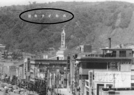 此処に白いペンキの木枠を組んだ大きな「カクイわた」の看板があった。昭和の時代、長い汽車の旅を経て故郷に帰る時、田上に差し掛かって桜島が見え、西駅(今の中央駅)のホームに立った時この「カクイわた」の看板を見てやっと帰ったなとホッとしたものだ。丁度長島美術館の展望台の一段下の辺りだ。余り崖ップチに近くて危険だというので基礎だけは後ろに30mずらして残っているそうだ。先日ロスアンゼルスに行った時、街の外れの山の上にテレビでよく出てくる「ハリウッド」という英字の大きな看板が街から鮮明に際立っているのを見てそれに張り合うような昔の武岡を思い出した。昭和29年8月に建てられたが土木事務所から鹿児島県屋外広告物に関する条例の改定があって昭和54年ごろに撤去されているそうだ。懐かしい限りであった。(写真@)(カクイわた・岩元 基氏の提供による)