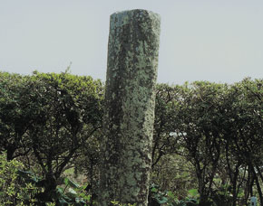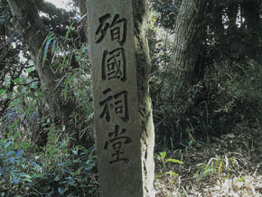 昭和12年私が旧制一中(現鶴丸高校)に通う頃から戦時色が強くなり世の中が騒がしくなり出した。武岡に高射砲陣地が出来て今の美術館の辺りは厚いコンクリートに覆われて大砲や物凄く大きなスーター・サックス、チューバ等のラッパを纏めた様なグロテスクな聴音器という大物が据え付けられた。これで飛行機の来襲する方向を探るという今ならレーダーというところだ。その為には工兵隊の部隊が来て今の自動車が通う登山道路を構築した。部隊の集合場所が今の植林地の辺りにあって神社が祭られて兵隊が朝夕捧げ銃などやっていた。今では神社は跡形も無く表に「殉国祠堂」裏に「昭和5年10月5日」と記した1m位の石碑が建っているだけだ(写真B)。丁度満州事変の頃だ。これから軍の圧力が強くなっていった時代で碑文にも何等かの意味が有るかもしれない。B-29の来襲に此処の砲台が応戦しても弾は敵機まで届かずに機体の下で破裂して白煙を残し、敵機は悠々と飛び去るだけだった。戦後陣地は撤去されたがコンクリートの基礎は巨大な塊になって何時までも残っていた。その跡に現在の長島美術館が建っている。