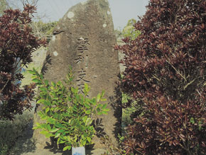 又武岡墓地の外れには家畜を供養する馬頭観世音らしい自然石が立っており裏面には「地域農民の家畜の墓地」と彫ってある。石の表面には「摩利支天(インドの神様で武士・力士の守り神)阿修羅の軍を調伏した」と刻んであり郷中の信仰が厚いという。神仏混合の形で「まりすて」と呼ばれ何となく曰くありげな自然石の碑である(写真C)。