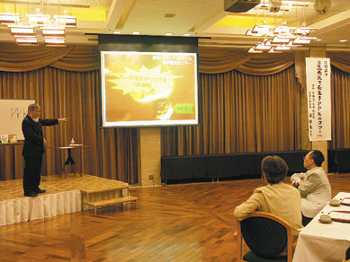 癌になってよかった。そんな非まじめな発想もあるんですよという話を今日はまじめな皆さんにしたい。非真面目の有名な質問「氷が溶けたら何になりますか。」もちろん水ですよね。水以外の答はなんですか。10数年前の有名な話ですからどなたかご存じでしょう。「春になる」ある小学1年生が学校の宿題でそう書いたら先生がぺケしました。こんなにいい答えを何で間違い。お母さんが怒って新聞に投書しました。いろんな答えがありますね。飲んべえに聞いたら、水割りがうすくなると言うでしょうし、環境問題専門家は大洪水になると言うでしょうね。流行語もちょいと捻って面白くできる。ねー失楽園しない。まじめな人はとんでもないという顔をしますが。失楽園は困るけど永谷園ぐらいだったらええわ。伊藤園はお茶だけ。これからはこういう返し技が要りますよ。