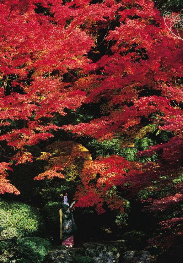 全国に紅葉の美しい所はたくさんありますが、京都の秋は格別な気がします。心洗われるような極上の紅葉を見つけに秋の京都へ。一見の価値はあります。ただし、この時期どこへ行っても、人・人・人……。このショットはあくまでも撮影会での 1 コマであり、『紅葉の下に佇む舞妓さん』に出会えることは、まずないでしょうが…。
