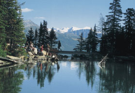 その昔先住民がよく狩をしたカナナスキスの岩山の近辺までポプラの深い森の中を歩く。途中黄金色に黄葉したアスペンの葉と白樺そっくりの白い幹のコントラストがとても美しい。途中には急な登りもあり息があがるが、やがて森を抜けると遙か遠く山々が繋がり、眼下には見渡すかぎり草原と湿原が広がっている。見晴らしの良い緩やかな斜面からはハート型をしたその名もハート・レークが眺められた。この日のハイキングの到達地点である垂直に聳え立つヤムナスカ山(2,800m)の岩場ルートの直下で、折からの強風に吹き飛ばされないように気を配りながら、大きなおにぎり2個が入ったボリュームたっぷりの和風ランチを残さず平らげる。帰りは同じルートでゆっくりと下山する。午後はボウ河の激流とその背景をなす遠く雪を戴いた山々の雄大な景色を観に行く。