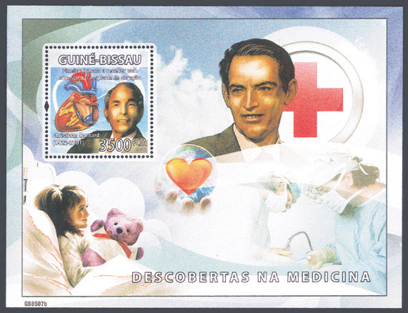 心臓外科医師クリスチャン・バーナード(1922〜2001)の肖像と心臓の図