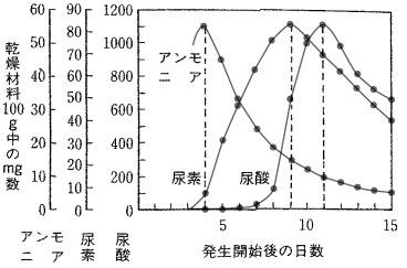 上図の如く、発生中の排出物はアンモニア、尿素、