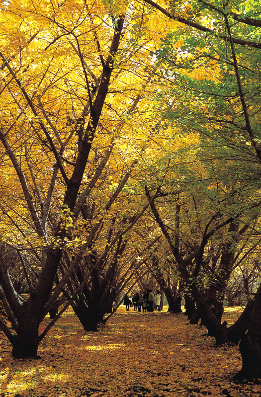 垂水市新御堂を走る県道沿いの山林に約1,200本のイチョウ並木があります。個人で約30年かけて育てた由にて地域の名所となっています。
