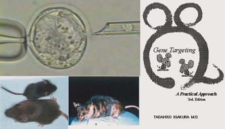 『平成4年に鹿大二生化(村松教授)で,トランスジェニックマウスの成功を期に遺伝子ターゲッティングのプロジェクトが計画され,当時大学院生だった私は,納教授の紹介の元,初めは軽い気持ちで参加しました。しかし,実際取り組んでみますと,まず化学基礎知識の整理,生化学全般に及ぶ実験手技の修得,細胞培養,マウスの飼育管理,特殊機器の製作など試行錯誤を重ねながらやっていかねばならないことが分かり,気の遠くなる思いでした。私のテーマは,鹿大二生化で発見同定されたベイシジンという免疫グロブリンスーパーファミリーに属する糖蛋白で,その遺伝子のマッピングとシークエンスもやらねばなりませんでした。現在,Basigin(BSG)はCD147として同定されていますが,当時は,現在の鹿大皮膚科の金蔵教授らも一緒に携わっておりました。平成5年春に村松教授が名古屋大学第一生化学に移られ,私も10月から名大に大学院特別研究学生として移籍したわけですが,この頃からタイムリミットという言葉が重くのしかかっていたように思います。名古屋では,熊大遺伝医学研の要先生(現琉球大学医学部准教授)と共同で遺伝子関係や細胞培養の条件設定とセットアップ,動物舎でのマウス及び管理のセットアップ,特殊機器の作製やセットアップなどを行い,3月にはベイシジン蛋白が発現しないように合成したノックアウト遺伝子の作製,作製した遺伝子と相同組み換えを起こさせた多能性幹細胞(ES細胞)の選別までこぎつけました。しかし,4月からは全て1人でやらねばならず,1ヶ月ほどキメラマウス作製の試行を行い,6月からベイシジンノックアウトの生殖キメラ(生殖系に目的の蛋白が発現しないように人工的に組み換えた遺伝子が入っている)の作製にかかり,幸運に幸運が重なり7月にはキメラを手中に納めることができました。今は業者が目的のノックアウトマウスを作製してくれるようですが,当時は相同組み換えのESをつくることすら大変で,キメラマウスになると物凄い偉業だったんです。しかし,実際に生殖キメラであるかどうか判明したのはそのキメラマウスから生まれた仔マウスを解析し,ヘテロ(人工的に組み換えた遺伝子と正常の遺伝子の両方をもっている)を確認した10月でしたから,それまでの間は解析同定の為にアイソトープを使ったサザンブロット,ノザンブロット,ウエスタンブロットやPCR(ポリメラーゼ連鎖反応)等の条件設定,臓器など組織染色のトレーニング,ベイシジンの胚〜成体での発現の検索(免疫染色やin situハイブリダイゼーション)等々を並行してやっておりました。なかなかホモマウス(正常な遺伝子はなく,人工的に組み換え遺伝子のみを持っている)が生まれず,ひたすら仔マウスを生ませ,200匹近く調べた3月にようやく記念すべきベイシジンノックアウトのホモマウス第一号を得ることができました。まさに怒涛の一年半で,徹夜もよくありましたが,深夜の3時過ぎが帰宅時間の平均だったと思います。夕食はそれから食べていましたので,家内に大変申し訳なかったと思っております。実験を終えて深夜に駐車場に歩いていくまでに,運というものがあるなら全て使い切ってもいい,でも本当にうまく行くのだろうかという不安と疲れからか,よく傍らで嘔吐していたことを思い出します。おかげで体重は45kg位だったと思います(今は60kgです)。しかし,大きな失敗による足踏みはなく,本当に一生の運を使い切った様なものだったと思います。そろそろ帰鹿の時期になっていましたが,半年延期し9月までホモマウス(ベイシジン蛋白が発現していない)におきる種々の異変の解析にあたりました。この半年もなかなか大変で,ホモマウスが生まれにくく,2,000匹以上の莫大な数のマウスを維持しつつ,癌センターなどの専門研究機関とも共同研究という形で解析を行いました。なんとか9月末までにまとめ上げ,遺伝子ターゲッティングをゼロからやり遂げたという満足感はとても大きかったのですが,まだまだ調べたいことが山程あり,後は門松先生(現名大一生化教授)に託しはいたしましたが,大変心残りでありました。恥ずかしい話,村松ラボを引き上げる当日,溢れ出る涙をこらえることは出来ませんでした。しかし,この私の一連の実験の成功の裏には,村松教授のバックアップはもちろん,納教授はじめ三内科教室の皆様のご理解があってのものだったと常々感謝いたしております。また,名古屋大学で初めて遺伝子ターゲッティングを成功させ,村松ラボの長年のテーマである,ミッドカイン(MK)蛋白のターゲッティングプロジェクトも軌道に乗せることが出来,自分でも嬉しく誇り高い思いでいっぱいであると同時に,生化学という基礎医学を存分に学び,その価値を改めて知ることが出来たことは,医師としての私の生涯の宝物であります。』