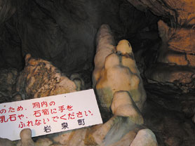 山奥の森の中に目立たない鄙(ひな)びた一画があった。その洞窟の奥は意外に深い。鍾乳洞に達するまでは人工のトンネルで進む。鍾乳石(つらら)が細い。日本で一番美しいと言う人もあるが,他の場所と同様に個人の主観があるだろう。洞の出入り口は私が行った当時は何も無く只の藪だったが,今では周囲に売店などが出来たりして賑やかな街になっているらしい。