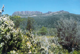 タスマニア島の地理上の中心地点測量記念碑(通称,タスマニアの臍)で記念写真を撮り,ついで世界遺産に指定されているセントラルプラトーに入った。尾瀬の湿地帯に似た地形で,木道を歩きながら(パインレイクウォーク),ここでしか見ることの出来ないクッションプラントやペンシルパイン,パイナップルグラス等々の珍しい固有植物を鑑賞した(写真 3)。キャプテン・クックがお茶の代わりに飲んだといわれるティーツリーが白い花を咲かせていた。