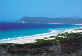 ハネムーンビーチでランチ。灯台岬からカツオドリの島がみえる。ホエールウォッチのポイント。リチャードソンビーチではアボリジニの貝塚跡を見た。