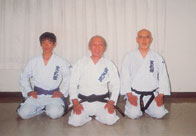 | 道場にて 左から次男(大基),今原犬二師範,筆者 |