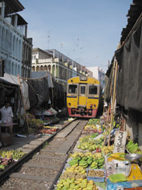 祐里ちゃんとはバンコク近郊へショートトリップに出掛けた。メークロンという町に面白い市場やホタルを見に行くべく,タクシーとバスを乗り継ぐこと2時間。のんびりとした田舎町という風情の駅前でバスを降り,まずは今晩の宿を探す。メークロンに関する情報はインターネットのブログを見ただけなので,どこにホテルがあるかはわからない。だが,今までの旅の経験から,駅の近くにホテルがあるだろうと見当をつけて地元の人に聞きながら探していると,あっさりとアルファベットで「HOTEL」と明記した建物に行き着いた。値段を確認していると,当然向こうは我々2人が同じ部屋に泊まると思っていて,1部屋いくらという提示をしてくる。こうして2人で泊りがけで来たのだから,この様なシチュエーションを想像,いや失礼,期待していなかった訳ではない。