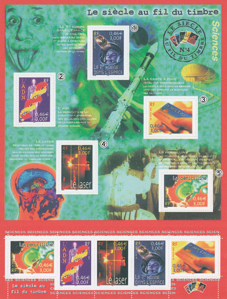 フランス(2001年)20世紀シリーズ/科学(タトウ付きシート)