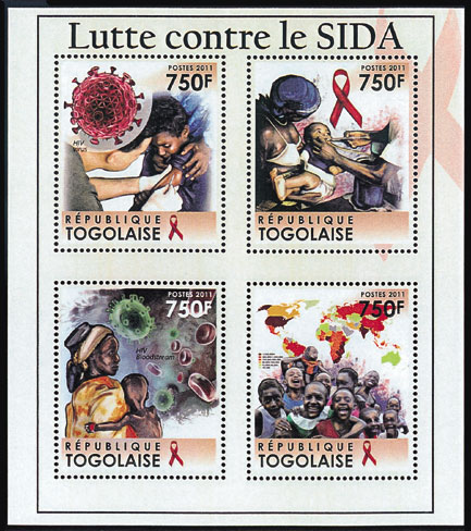 トーゴ(2011)エイズ発見30年(4種連刷シート)エイズ撲滅