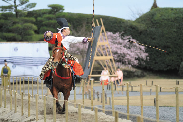 3月4日に仙巌園で行われた流鏑馬です。急ごしらえのコースのうえ,灰まじりの雨天という悪条件でしたが,初めて生で見た流鏑馬は迫力がありました。